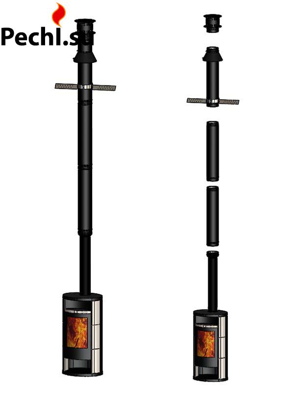Комплект дымохода Шидель Перметер диаметр 130/180 для печи-камина или банной печи. Подключение через верхний выход прибора с помощью элемента - переходник топка 1000 мм.